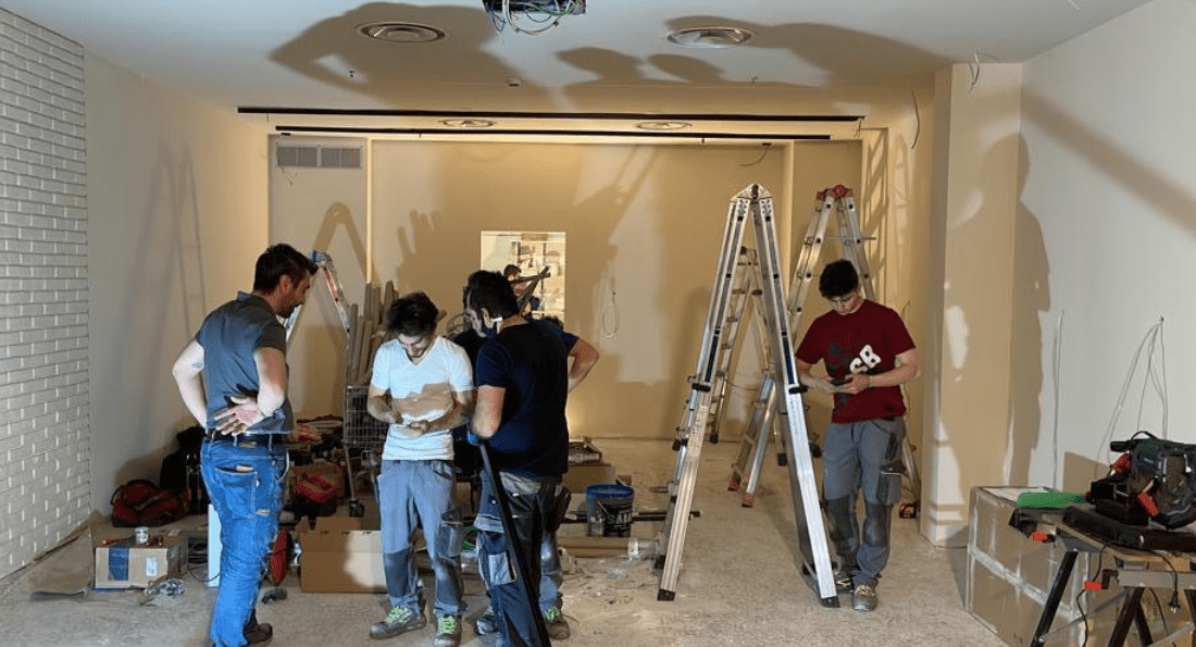 Nella prima fase del lavoro, poichè c’era un impianto elettrico esistente, abbiamo analizzato le necessità del nuovo impianto. Abbiamo modificato la struttura per adeguarla al progetto del nuovo negozio e abbiamo conservato tuti i componenti funzionanti e a norma che potevano essere riutilizzati.